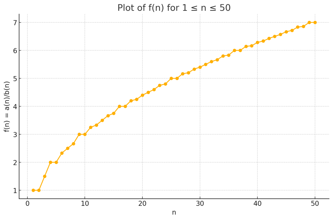 用ChatGPT Pro生成1/c(n)的图像,能够直观看出,它基本上是对平方根函数的分段线性逼近。