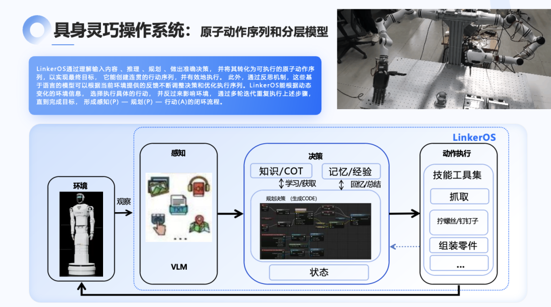 我们认为这是将来真正进入具身场景里面基础中的基础,目前用手做各种各样物理世界物品的抓取和调整位姿的能力和简单组装的能力。