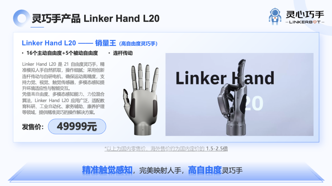 目前应该说如果算高自由度灵巧手,把全球其他公司产品全加起来都没有一款手卖的多,全球所有知名科研机构、互联网巨头跟灵巧手有各种各样的合作。
