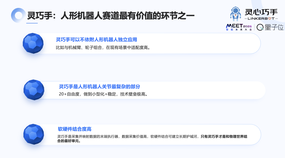 五年前我们在创业的时候,认为灵巧手是具身赛道里面最核心的零部件,当初选择这个赛道有几个原因: