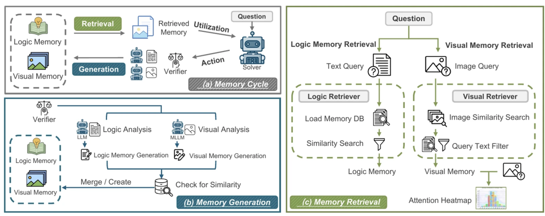 结构上,ViLoMem包含两个关键部分——记忆生成和记忆检索。