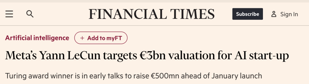 前脚LeCun本人在播客当中宣布了新公司名称,现在融资和估值目标就被《金融时报》曝光了。