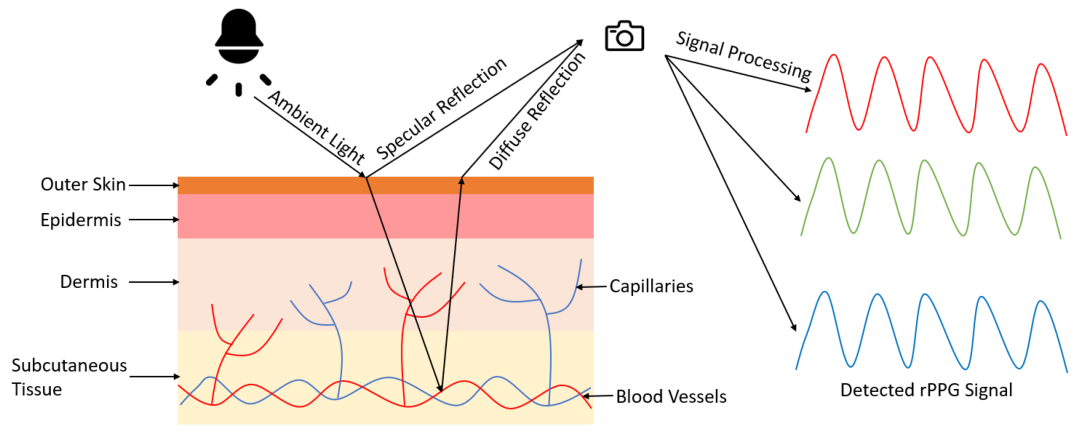 科思创动在隔空健康检测应用中采用的核心算法是远程光电容积描记术(rPPG),一种非接触式生理信号采集技术。