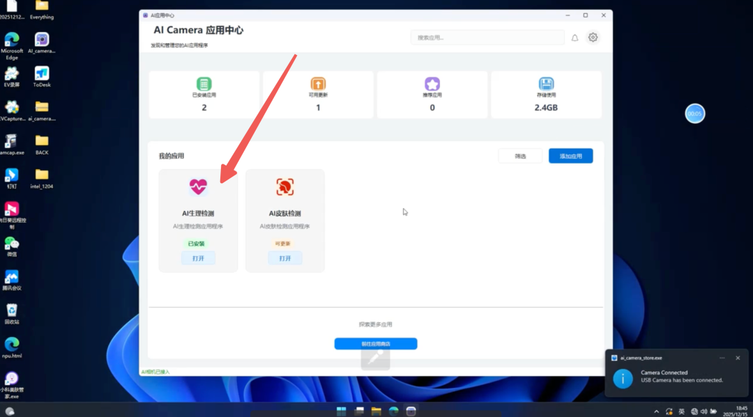 首先,在这个名叫AI Camera的应用中心里,找到AI生理检测并打开它: