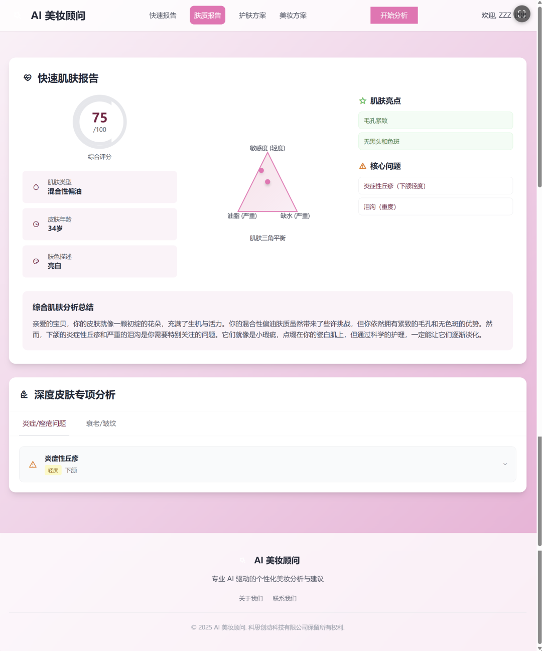 最终,AI美妆顾问会根据这份综合报告,提供个性化的护肤和美妆方案,精确到推荐具体品牌和产品步骤。