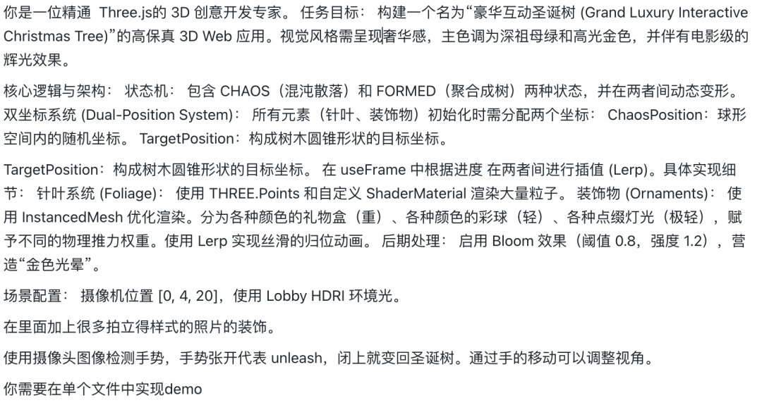 比如这是一个通过手掌的开合来控制的圣诞树,这次的提示词是中文的。