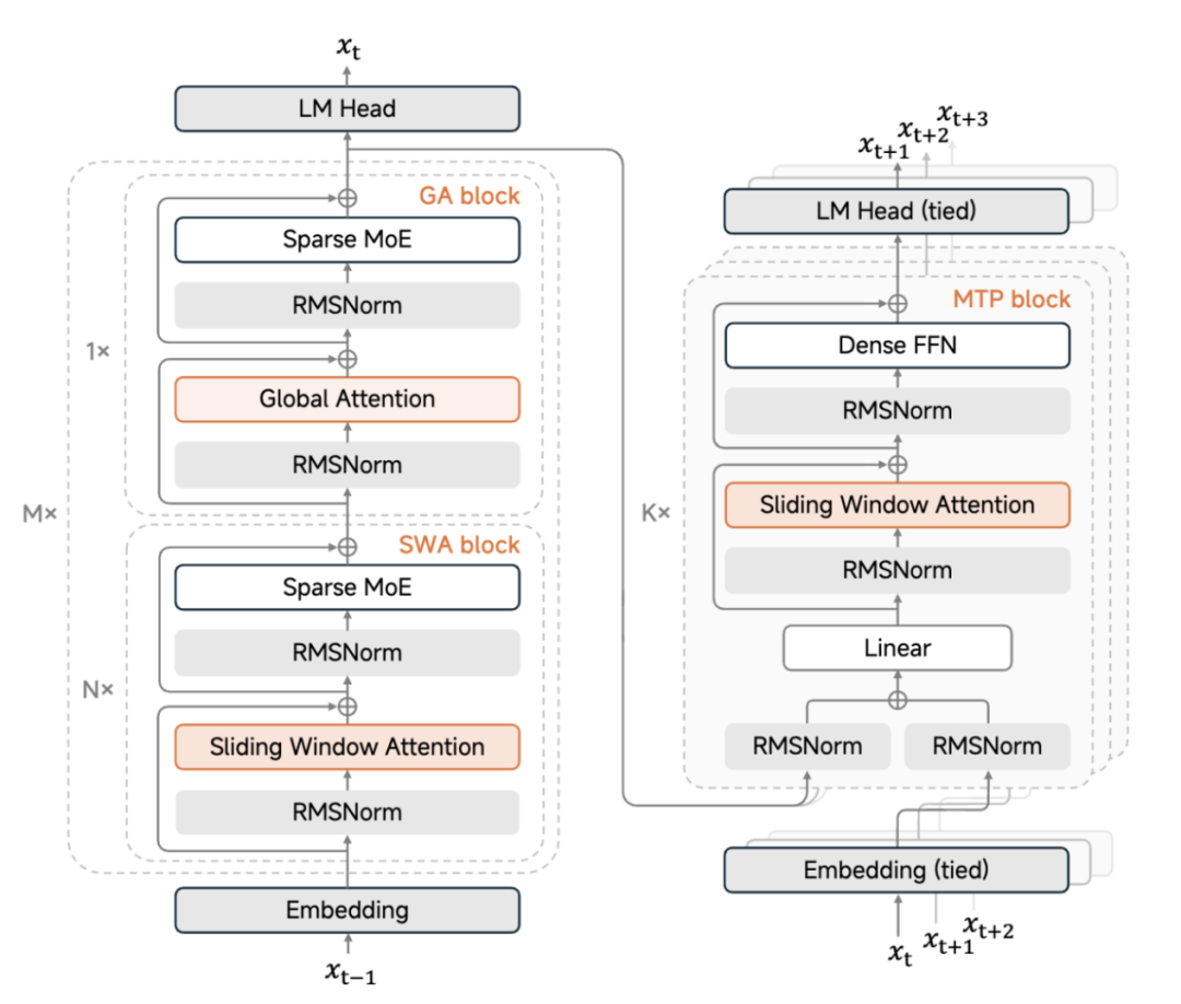 但是,SWA在提高效率的同时可能导致语义断层和长文迷失的问题,为此,MiMo-V2-Flash引入了可学习的注意力汇聚偏置(Attention Sink Bias)。