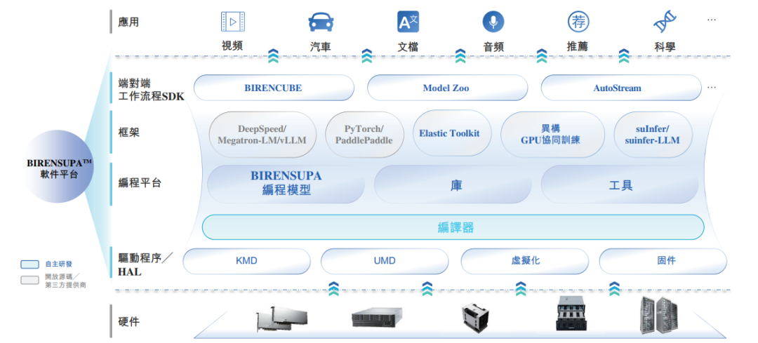 另一块产品是自研BIRENSUPA软件平台,搭建于其GPGPU之上,用于开发AI应用程序。