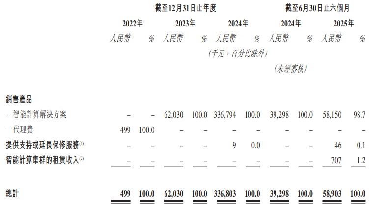 其中,智能计算解决方案是收入的核心来源,这部分收入实际是从2023年开始正式计入,2022年的收入全部来自代理费;而智能计算集群,也是从今年上半年开始带来租赁收入。