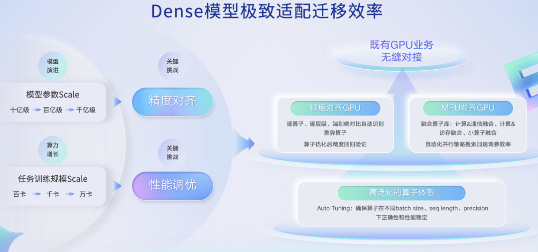 因此我们做了高度泛化的算子体系,针对不同的算子的size做了高强度的泛化,同时在泛化基础上还做到小规模验证精度,避免每次都使用万卡对比,从而保证大规模训练的可靠性。