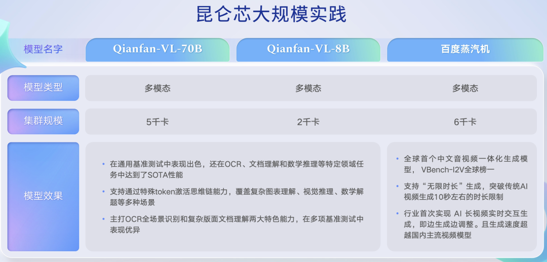 当前我们在百度Qianfan VL、百度蒸汽机都取得较领先的模型效果,并已经实现全栈基于昆仑芯的训练。