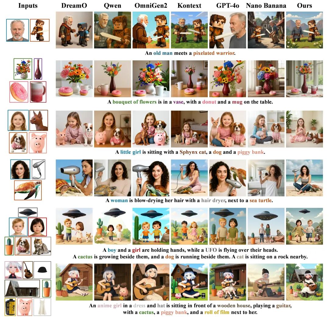 这种“前后管结构,中间管细节”的设计,使得ContextGen能够充分利用图像上下文,在保持布局控制的同时,实现对多个实例身份的高保真还原。