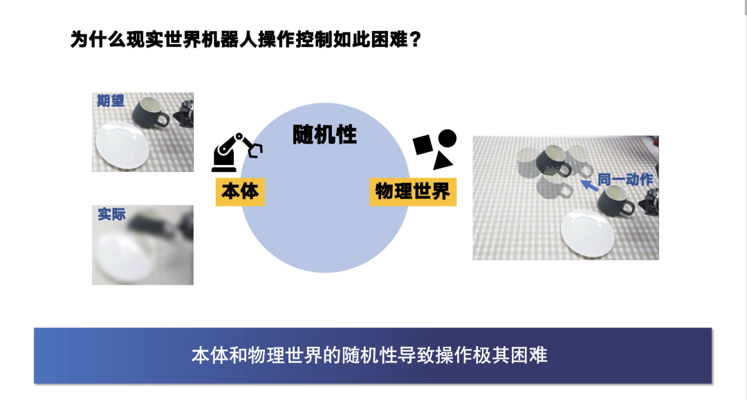 语言模型和多模态模型所面对的,是高度可复现、低随机性的符号世界;而机器人所处的物理世界,则充满连续性、随机性、不完全可观测性以及大量与力、接触和时序强相关的过程。