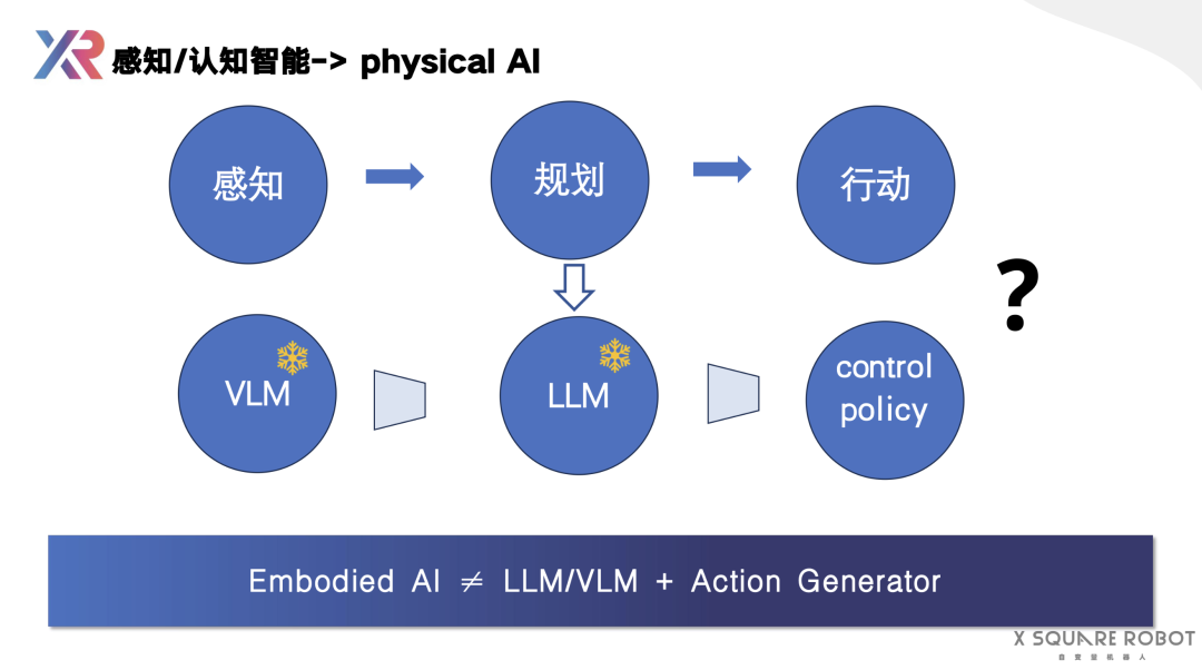 作为一线从业者,我们还是非常明确地认为,我们在做的具身智能模型的确就是一个完全独立于或者平行于虚拟世界中的语言模型、多模态模型的另外一个专门为物理世界使用的基础模型。