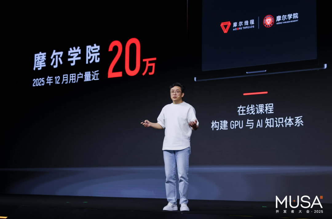 截止2025年12月,摩尔学院已经汇聚了20万名开发者。摩尔线程的目标更宏大:培育百万规模的MUSA开发者社群。