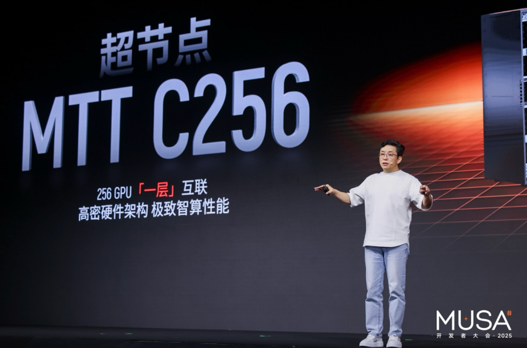在这次大会上,摩尔线程还前瞻性地披露了下一代高密硬件基石——MTT C256超节点。
