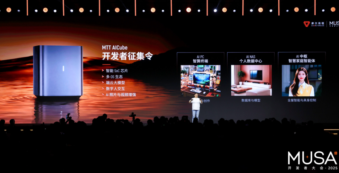 除此之外,针对端侧场景,摩尔线程还推出了桌面上的AI小钢炮——AICube。