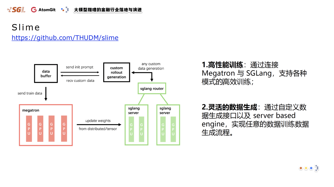 同时,Slime强化学习系统针对大规模GRPO与多阶段RL训练定制,实现训练系统与推理引擎的深度协同。