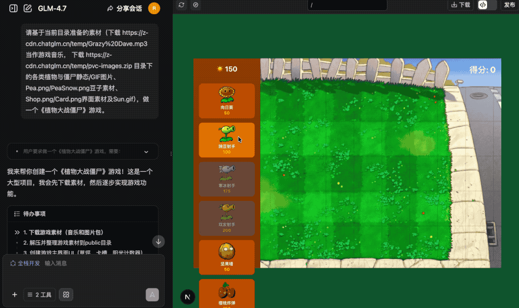 然后我们先做一个植物大战僵尸来小试牛刀,Prompt如下: