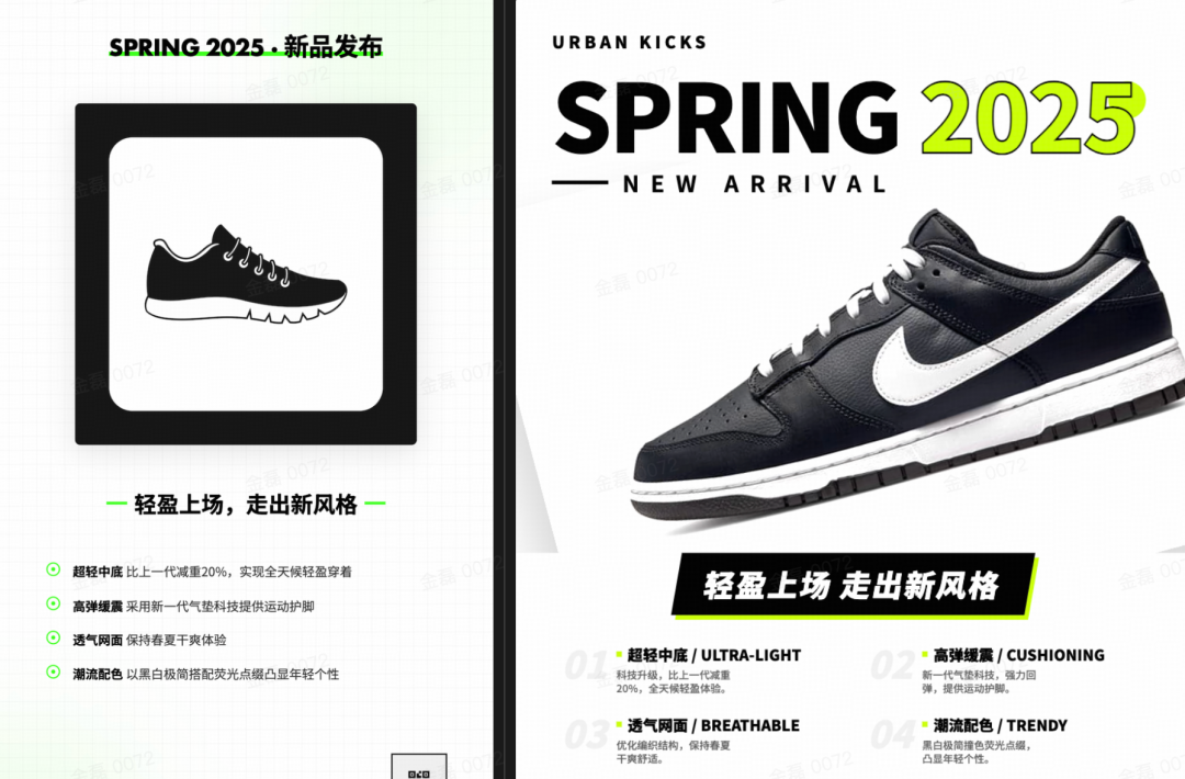 例如设计一张宣传运动鞋的海报,对比GLM-4.6和GLM-4.7,效果的差距就一目了然了:
