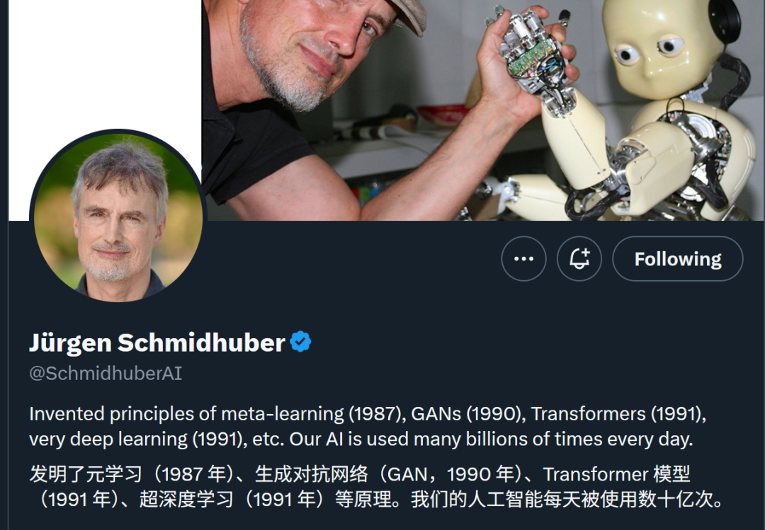 以及推特当前的拥有者马斯克,他评价Jürgen Schmidhuber时言简意赅:一切的发明者。