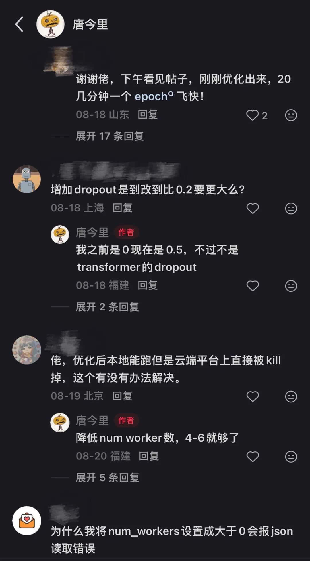 “大佬这个参数怎么调?”“佬,用你的方法优化完速度飞快!”……