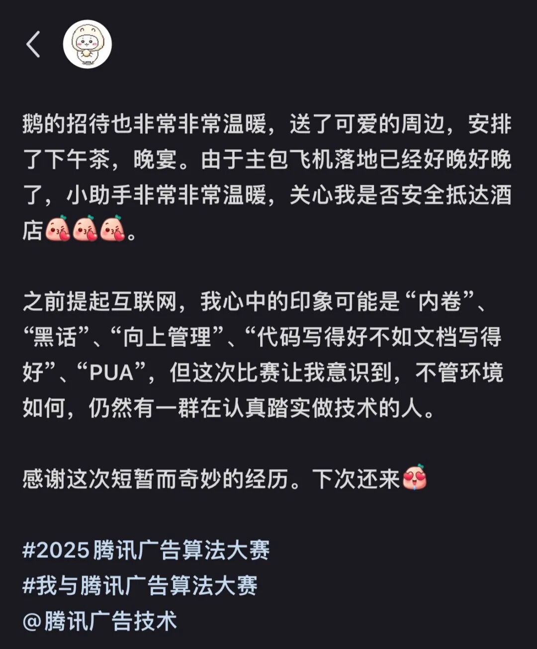 不管是这次的算法大赛还是之前把招聘会直接开进ICCV 2025,在聊技术、聊求职意向之余,腾讯都额外为参加活动的同学们设置了午餐会、交流晚宴等“面基”局。