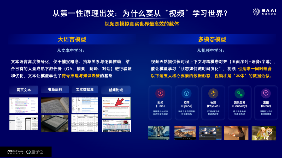 视频是能够大规模获得的模拟真实世界的高效载体,同时包含时间、空间、物理、因果关系以及意图等各种要素。
