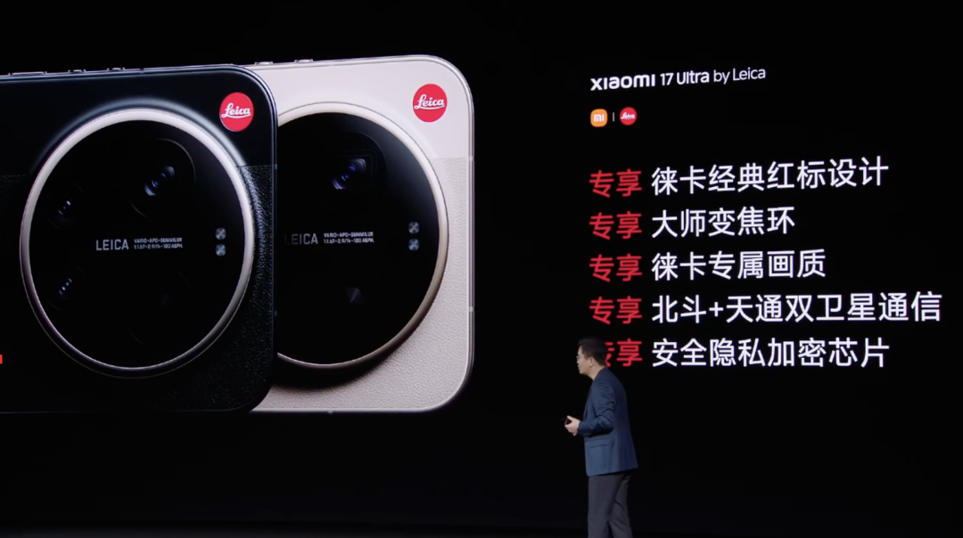 普通版之外,这次小米还和徕卡联手,为极致的摄影爱好者打造了“小米17 Ultra by Leica”,带“可乐标”的那种。