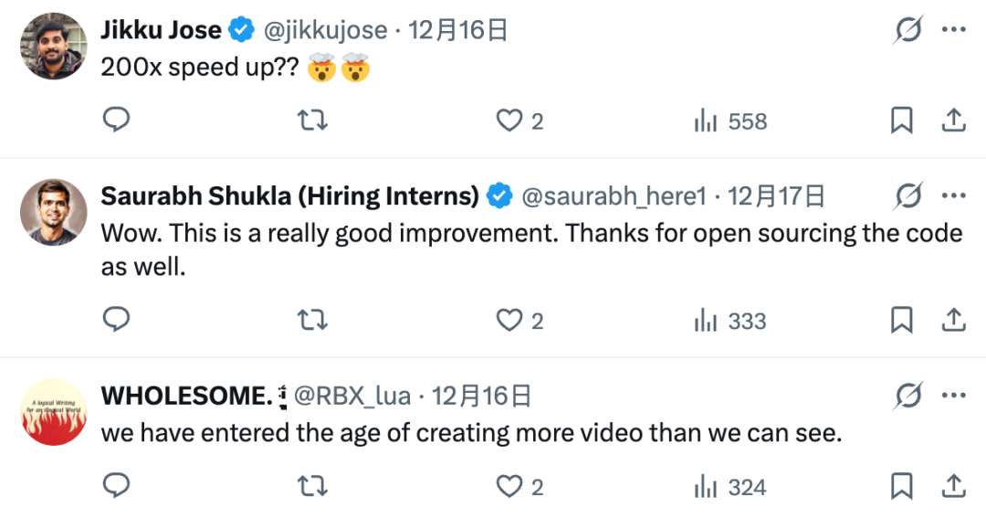 此外,腾讯混元、字节豆包、阿里Tora、生数Vidu、智谱清影、百度飞桨、昆仑万维、Google Veo3、商汤、vLLM 等国内外头部科技企业及团队,均已在核心产品中应用该技术,凭借其卓越性能创造了可观的经济效益。