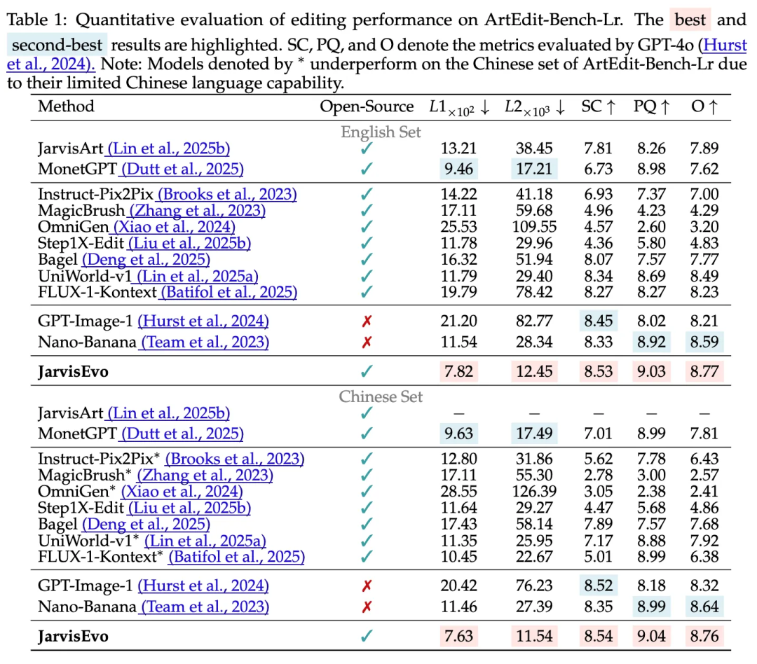 在包含 200 个样本的人类主观评测中,JarvisEvo在与Nano-Banana的对决中取得了49%的胜率(远超对手Nano Banana的28%),证明了其修图结果更符合人类审美 。
