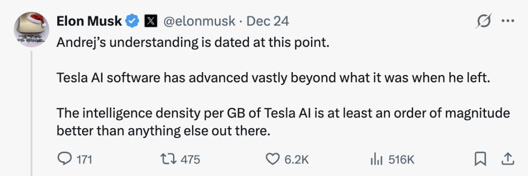 最近,马斯克在X上公开回应了好兄弟、特斯拉前AI负责人安德烈·卡帕西(AndrejKarpathy)的相关观点。