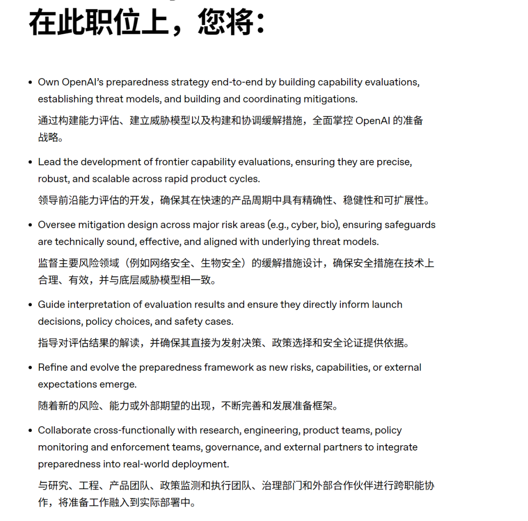 其核心职责是,制定并执行OpenAI的安全防范框架。