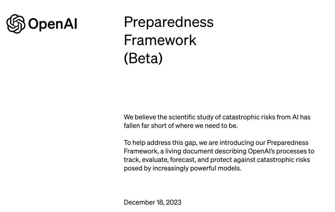 而超级对齐团队解散后不久,为了应对公众对OpenAI安全问题的担忧,OpenAI开始着手组建Preparedness团队(也就是最新提到的这个团队)——