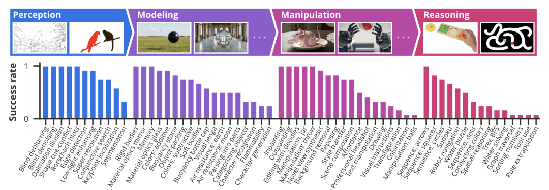 也正因为如此,Veo 3用感知、建模、操控、推理4大核心能力能搞定62种没学过的视觉任务。