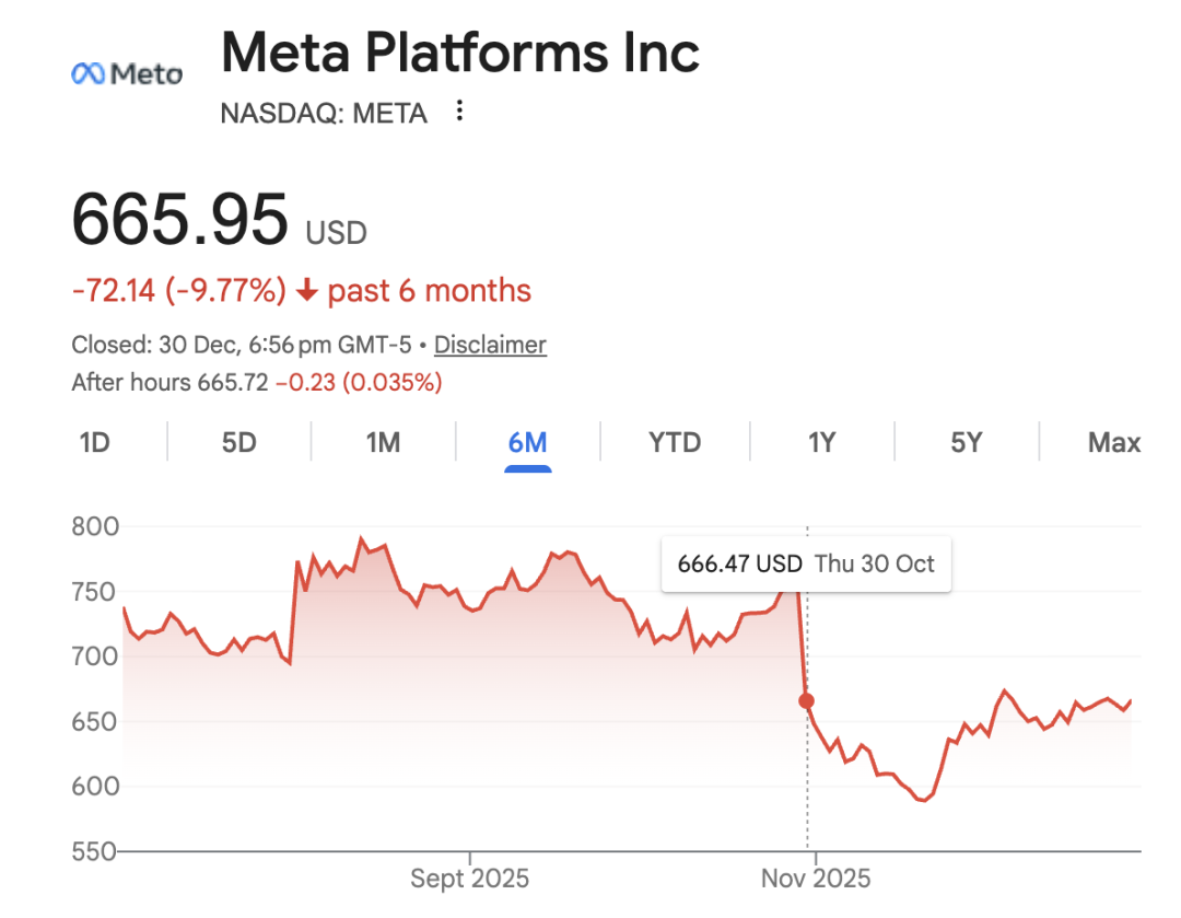 当扎克伯格在10月30日宣布2026年AI资本支出将大幅增加时,股价单日下跌11%,市值一夜蒸发2140亿美元,相当于一夜跌掉107个Manus。