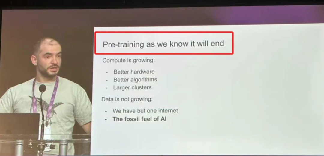 也是在这个时候,已经离开OpenAI的Ilya,在NeurIPS现场正式宣告了“预训练即将终结”。