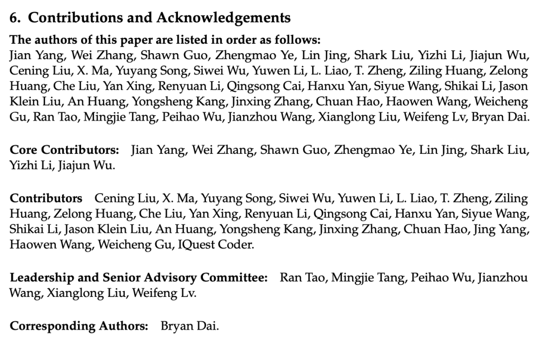 Paper最后附上了IQuest-Coder团队的成员名单。