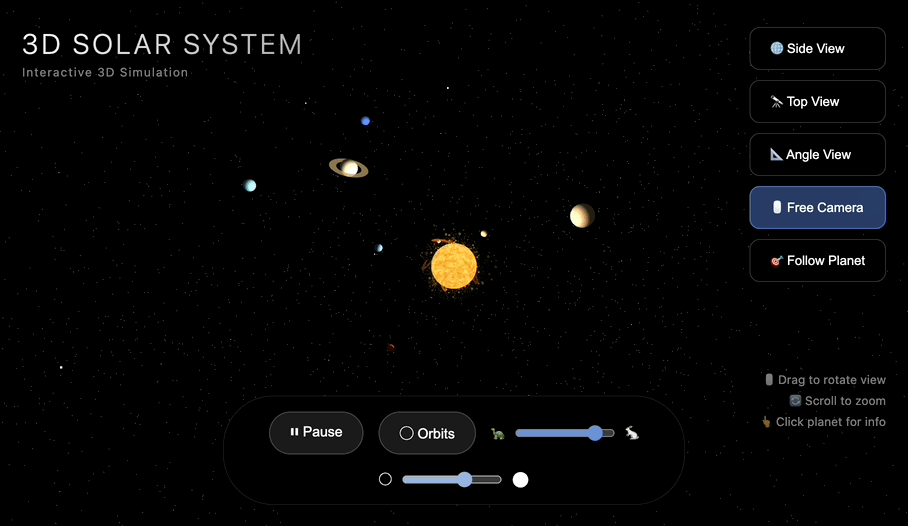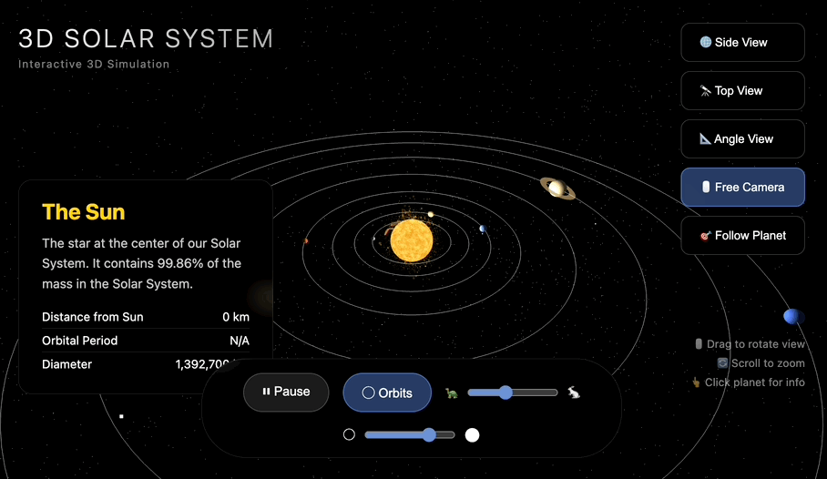 Prompt:编写一个网页来展示一个逼真的太阳系模拟。