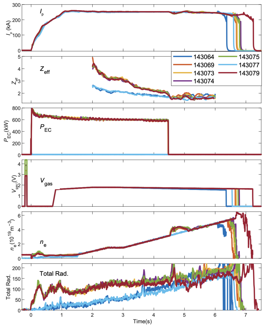为了在实验中通过上述物理开关进入理论预言的“密度自由区”,研究团队并未沿用传统的启动路径,而是在等离子体启动阶段,利用电子回旋共振加热(ECRH)辅助欧姆加热,并协同施加了远超常规水平的预填充中性气体压力。