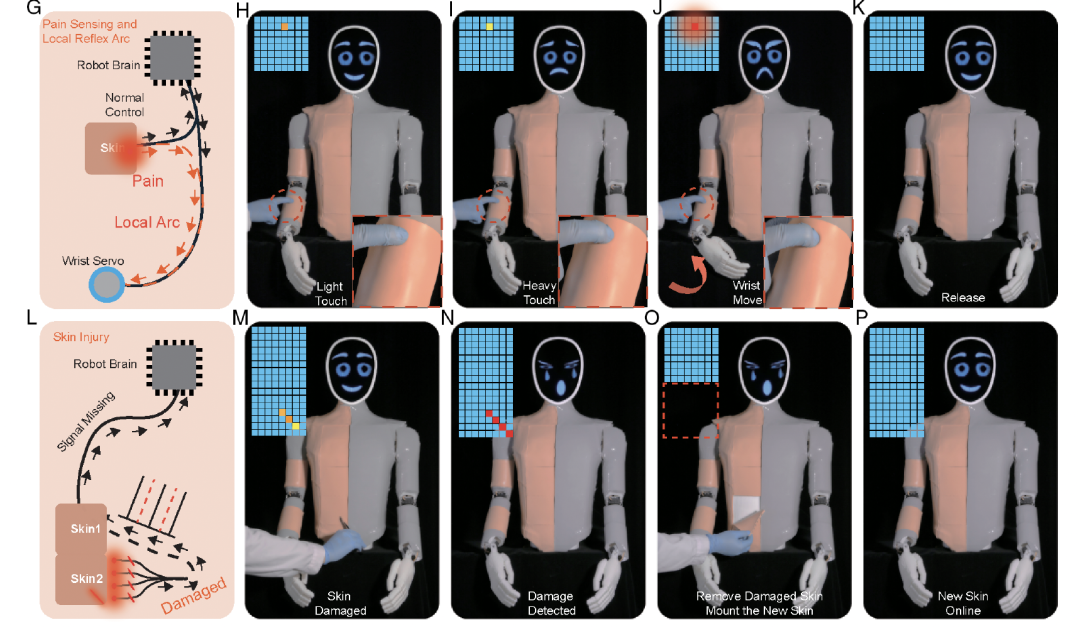 - 主动保护机制:具备局部反射机制,能够进行主动疼痛感知与损伤检测。