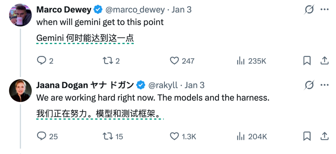 同时,Dogan还很坦荡地表示,在编程方面,Gemini还是略逊一筹的。