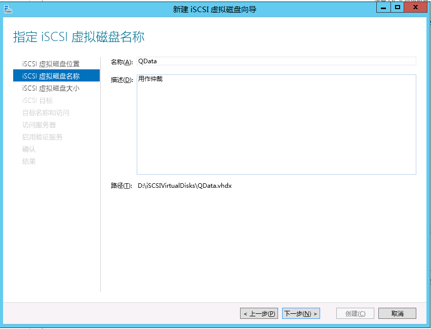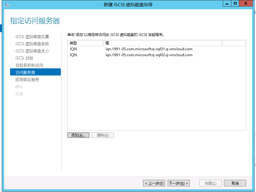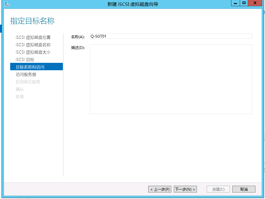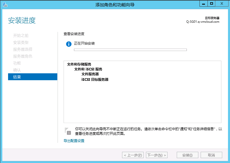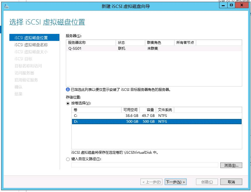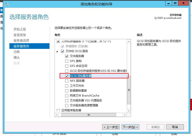 连接到 Q-SG01 上,点击安装 iSCSI 服务器,一路下一步选择 iSCSI 服务器: