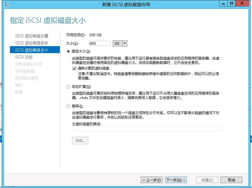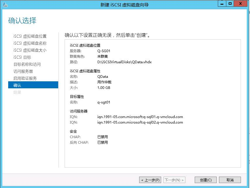 PS:注意选择固定大小,作为 SQLCluster 群集存储要求性能较高