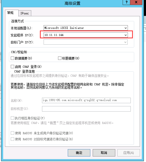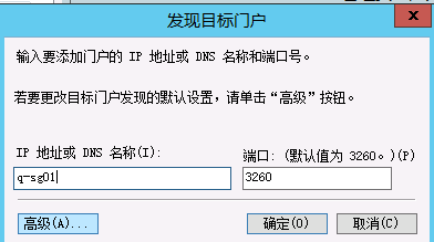 输入目标名称(即接受端,仲裁盘与数据盘可以使用同一个 iscsi 目标):