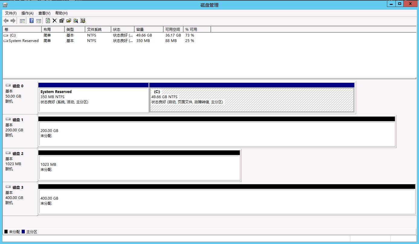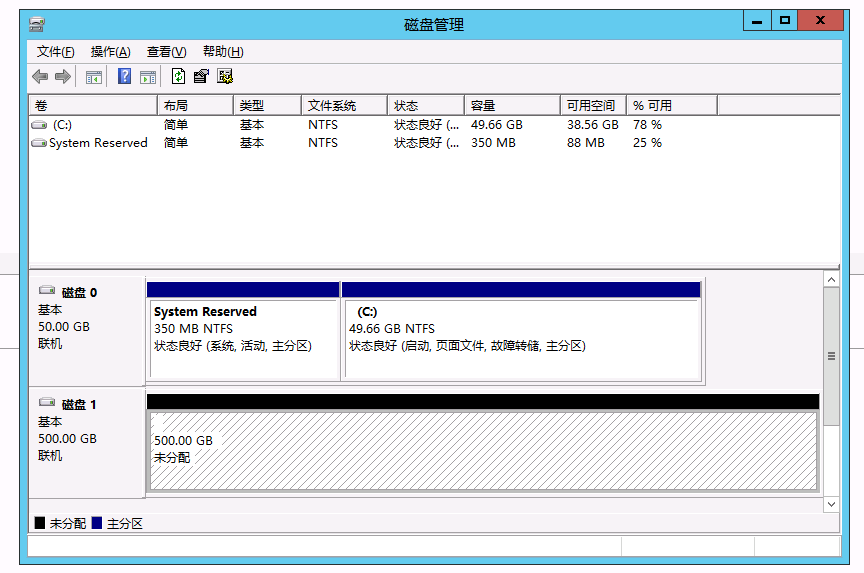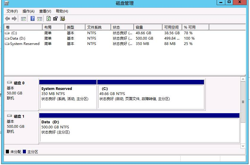 接着打开磁盘管理,查看 I 系列服务器带的数据磁盘是否初始化成功: