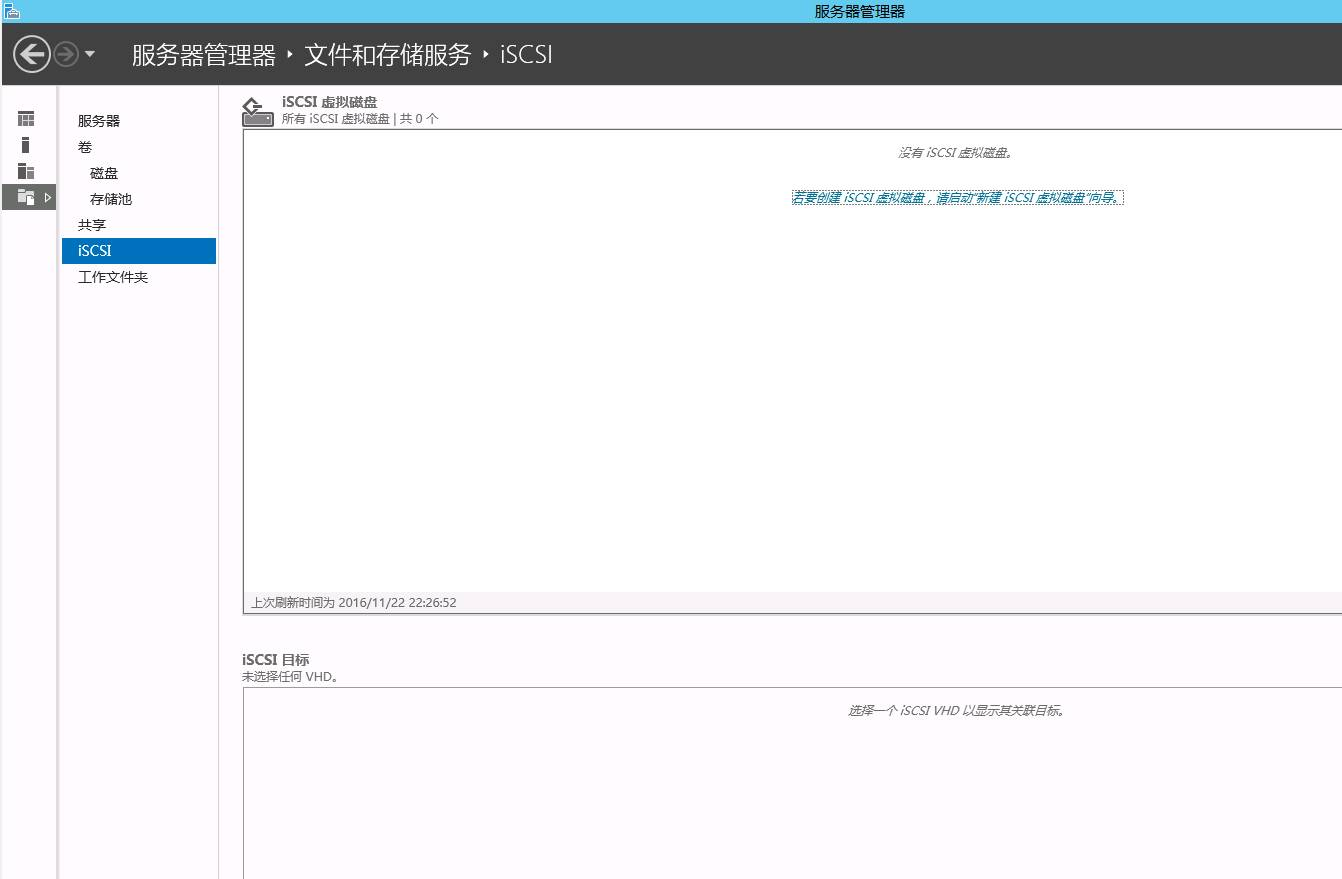 检查完成后,选择服务器管理器上 iSCSI 服务器: