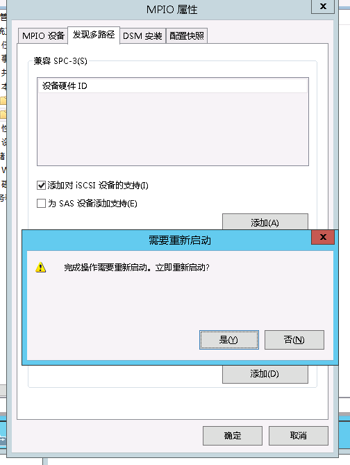 安装 MPIO 并开启 iSCSI 多路径支持: