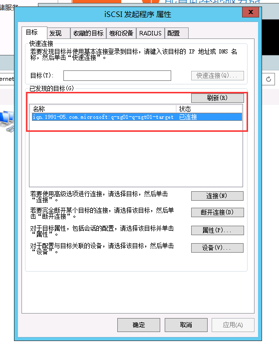 接着,登录 SQL01 、 SQL02 机器,连接 iscsi (使用 iscsi 发起程序):