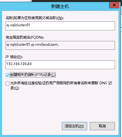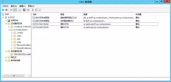 ClusterName 群集名已经用了一个 CLB ,现在要启用 CLB 第二、三个 IP 作为 SQLCluster 群集 VIP 绑定给两台 CVM 并指定 DNS ,记得把反向区域创建好,避免 nslookup 出现解析错误: